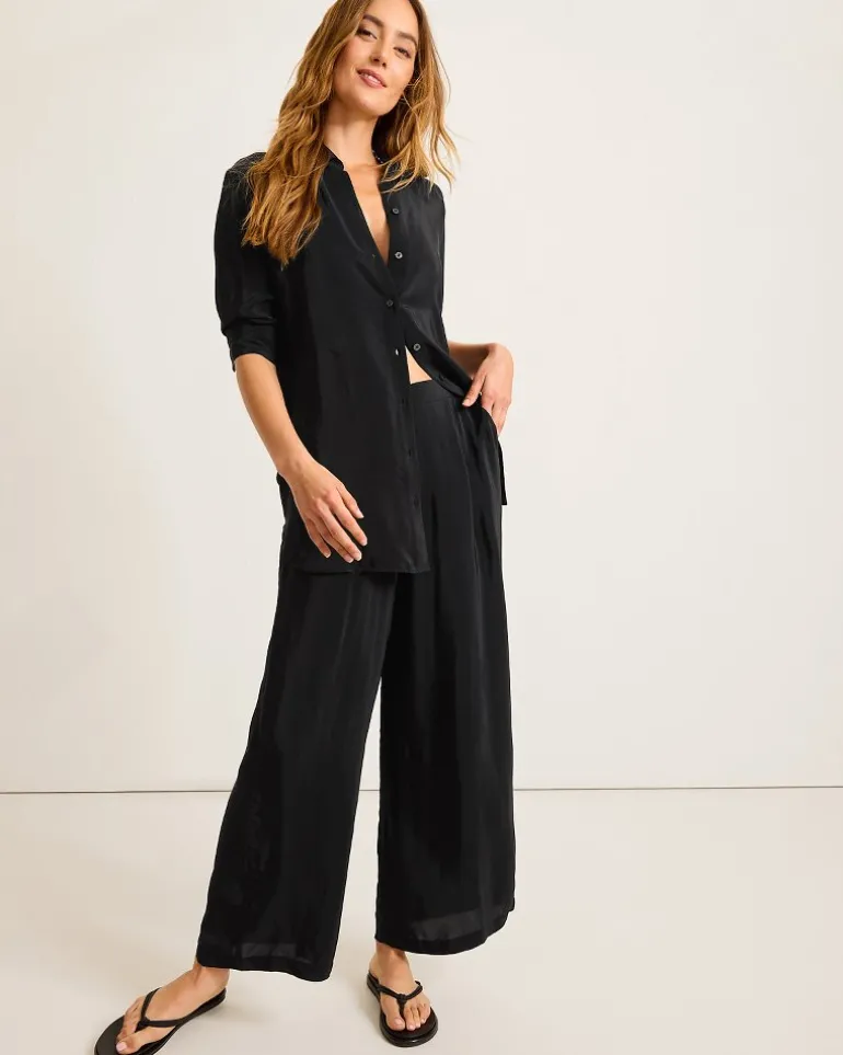 Crafted from a soft and lightweight fabric that moves with you, this boyfriend shirt is perfect to throw on when the beach gets a little breezy, especially when paired with its matching pants as a chic coverup set.