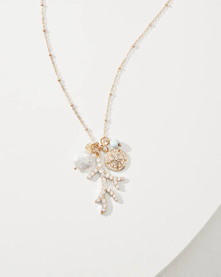 Delicate, embellished charms adorn this elongated chain necklace, bringing a cheerful dose of sparkle and island spirit to your everyday ensembles.