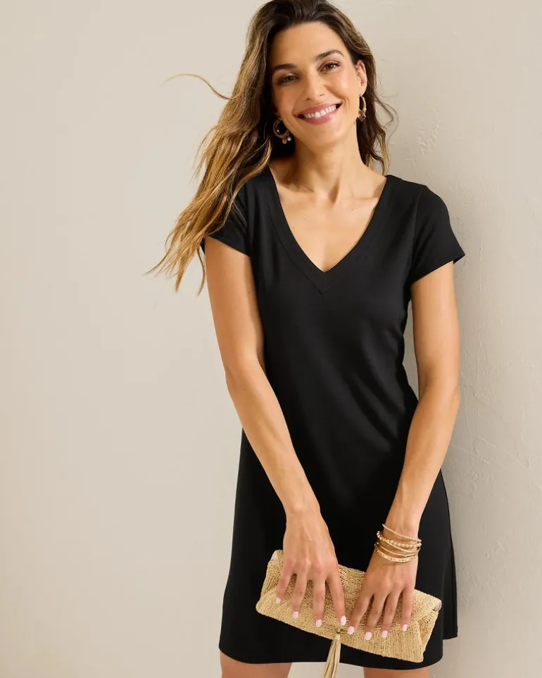 Meet the timeless style you’ll reach for season after season. Crafted from a stretch-friendly blend, this easygoing V-neck dress offers premium comfort in a flattering body-skimming silhouette.