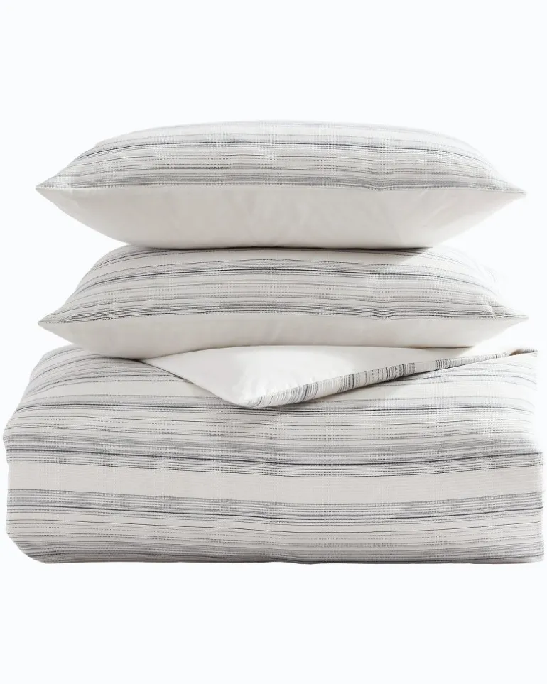 Ease into relaxation with the comfort of this micro waffle bedding set, featuring a tonal grey striped design that effortlessly complements your décor. The midweight comforter also comes with two matching shams and a breakfast pillow cover to complete your dreamy ensemble.