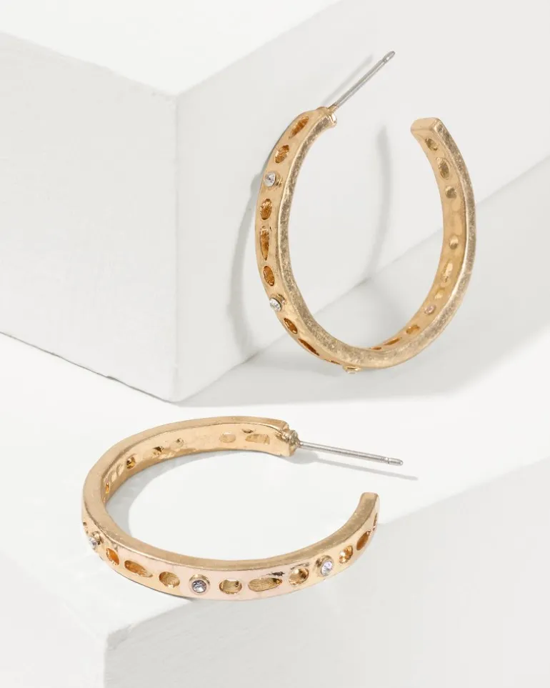 These gold hoops are anything but basic. Featuring an intricate openwork design with subtle sparkle embellishments, these earrings are the unique yet timeless accessory you need to glamorize your everyday looks.