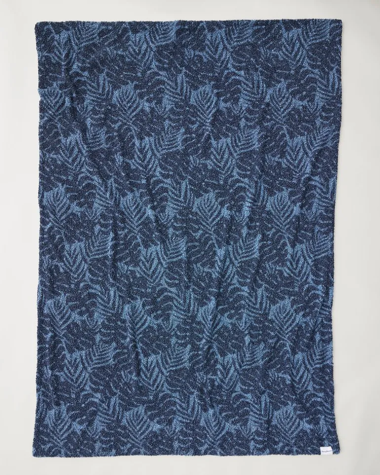 Wrap yourself in the sumptuous warmth of this decorative teddy throw, adorned with a chic palm-inspired print in versatile navy hues.