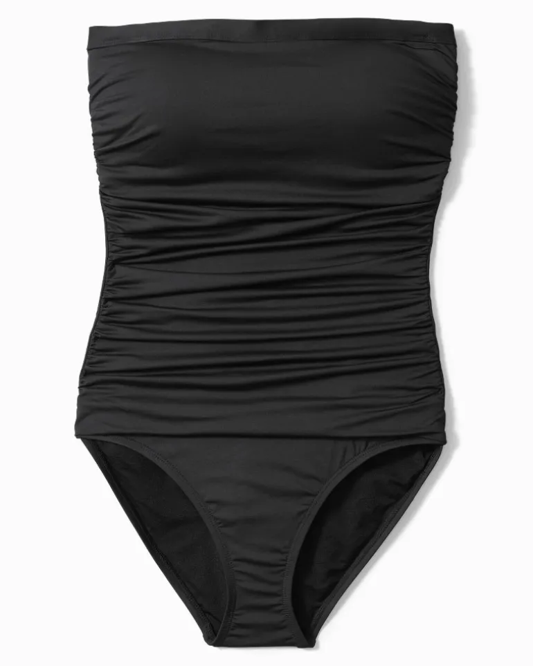 Jump into some seaside fun with this bandeau one-piece swimsuit. This bathing suit features chic shirring and a slimming inner panel so you can look and feel your best. A removable strap allows for a tan line-free look.