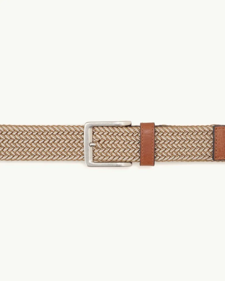 A dual-tone braided belt design, complete with sophisticated leather accents, adds interest to casual denim and khaki looks, while added stretch helps keep you comfortable all day long.