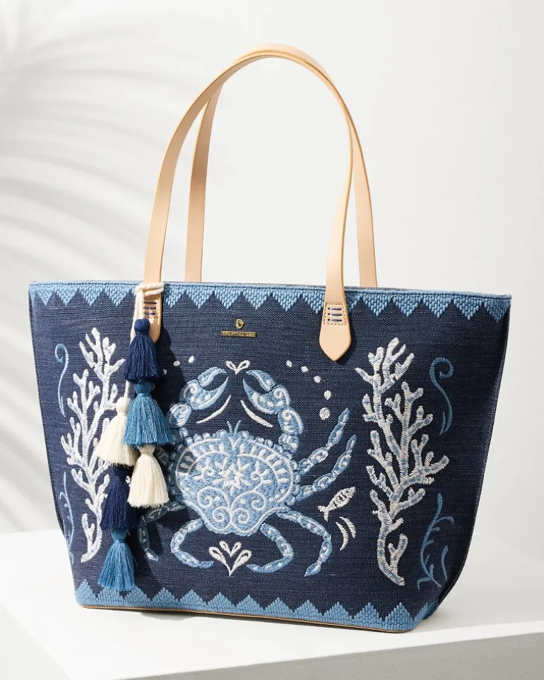 Elevated embroidery and a thoughtful design make this chic, beach-ready handbag stand out among the rest. Featuring a faux-leather base that helps keep it dry, this sea-inspired tote was made to be your ultra-stylish, carry-all companion for exploring everywhere from shore to town.