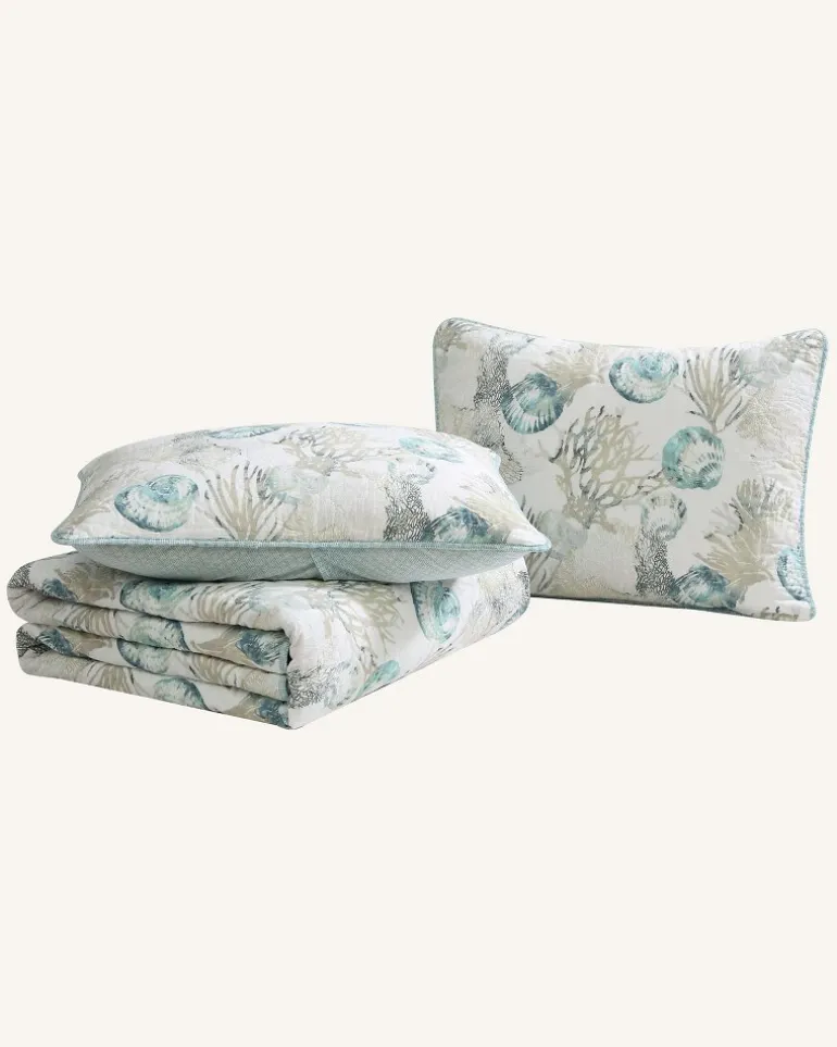 Soft, lightweight, and cozy, this quilt set makes the perfect island-inspired topper for your bedding. Featuring vibrant hues and calming blue tones, your sanctuary will feel just like paradise.