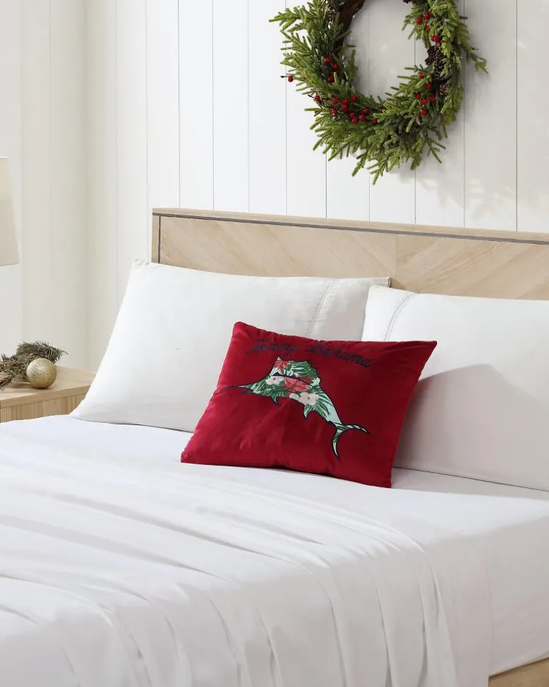 Show your island spirit through the holiday season with this velvet embroidered pillow, featuring our signature Marlin logo in a truly festive design.