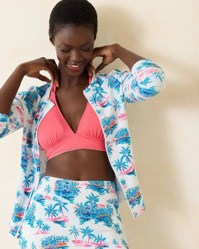 Brave the waves and never miss a beat in a full-zip rash guard, adorned with a chic tropical print that embraces your island state of mind.